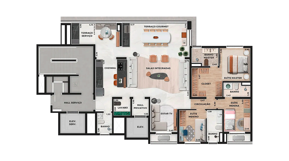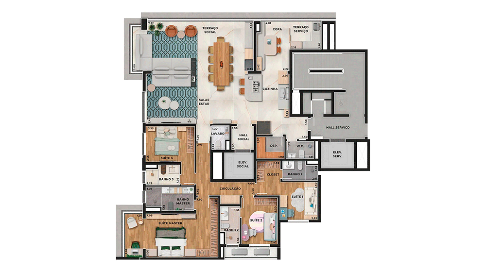 191 m² – 3 suítes + sala ampliada